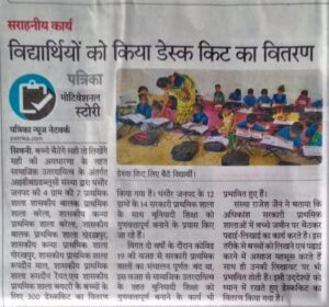 IDYWC distributed desk kits to 300 children studying in the government primary schools of 7 villages of Ghansor block of Seoni district. It was sponsored by the Jhabua Power Ltd. (JPL)