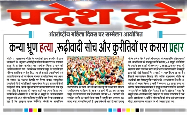 Pradesh Today covers women's issue raised by women on the occassion of International Women's day celebration at Ghansor organised by IDYWC with JPL
